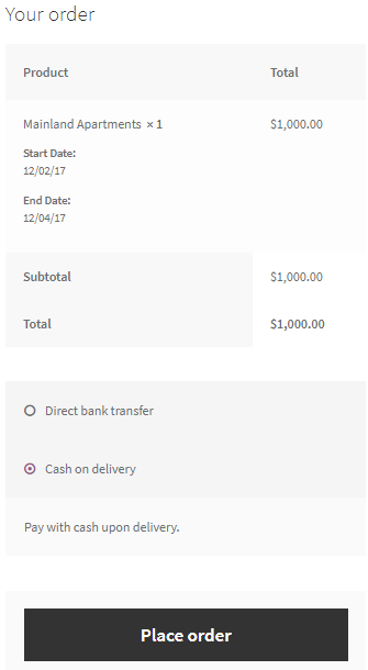 After selecting the preferred dates for renting the apartment, the price for it as per selected fixed block is displayed and Add to Cart button gets enabled. Also, because it is a Weekend block selected, the price displayed for it is $1000.