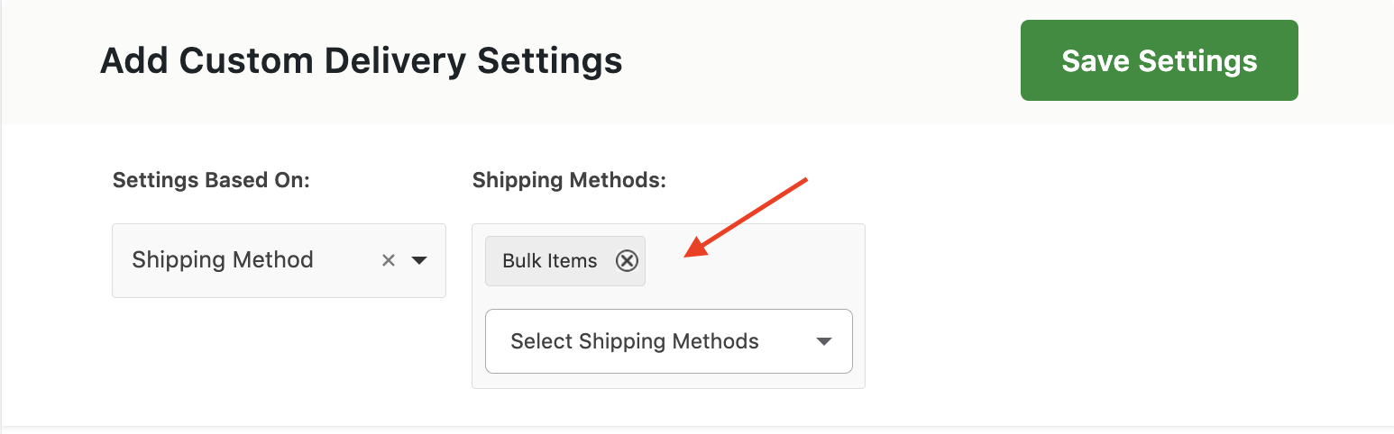 Select ‘Shipping Methods’ and choose the shipping class from the drowpdown. We’ll add the shipping class ‘Bulk Items‘ which was added in the settings under WooCommerce. You can go with multiple multiple shipping classes as well.