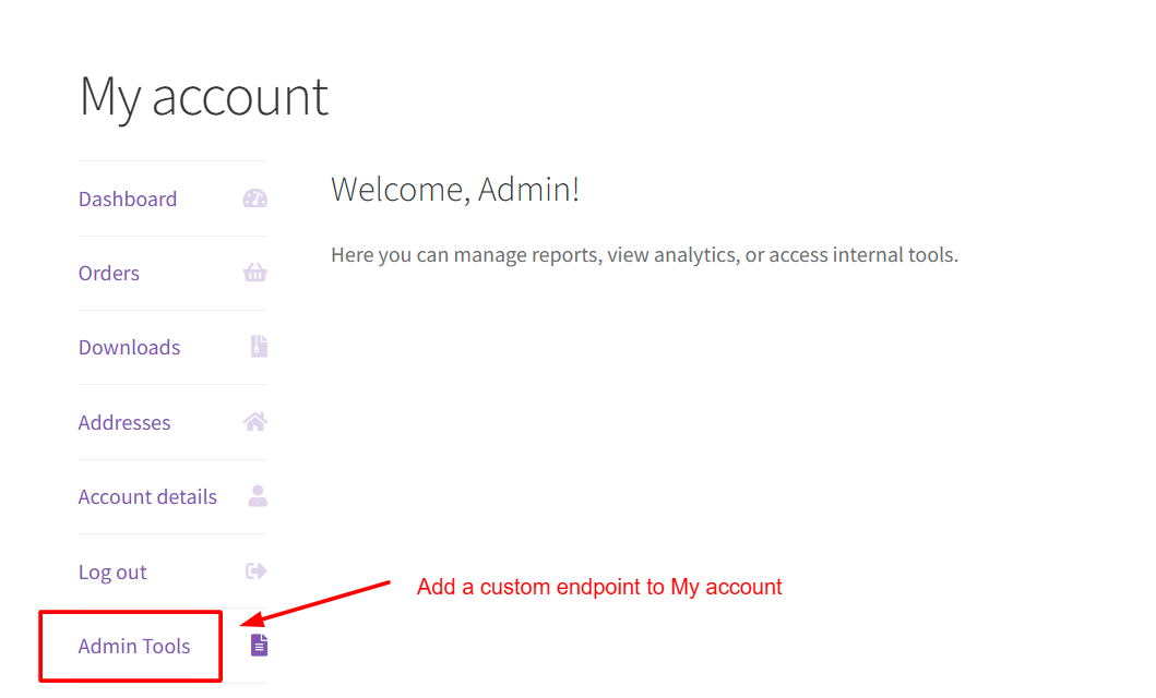 In this guide, you’ll learn how to create a custom My Account endpoint in WooCommerce that appears only for administrators and loads correctly